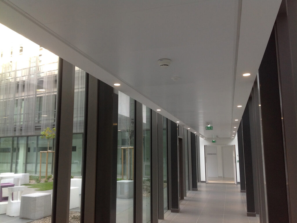 Les plafonds métalliques (bacs, cassettes, résille) permettent un aspect décoratif dans les halls et grandes surfaces.